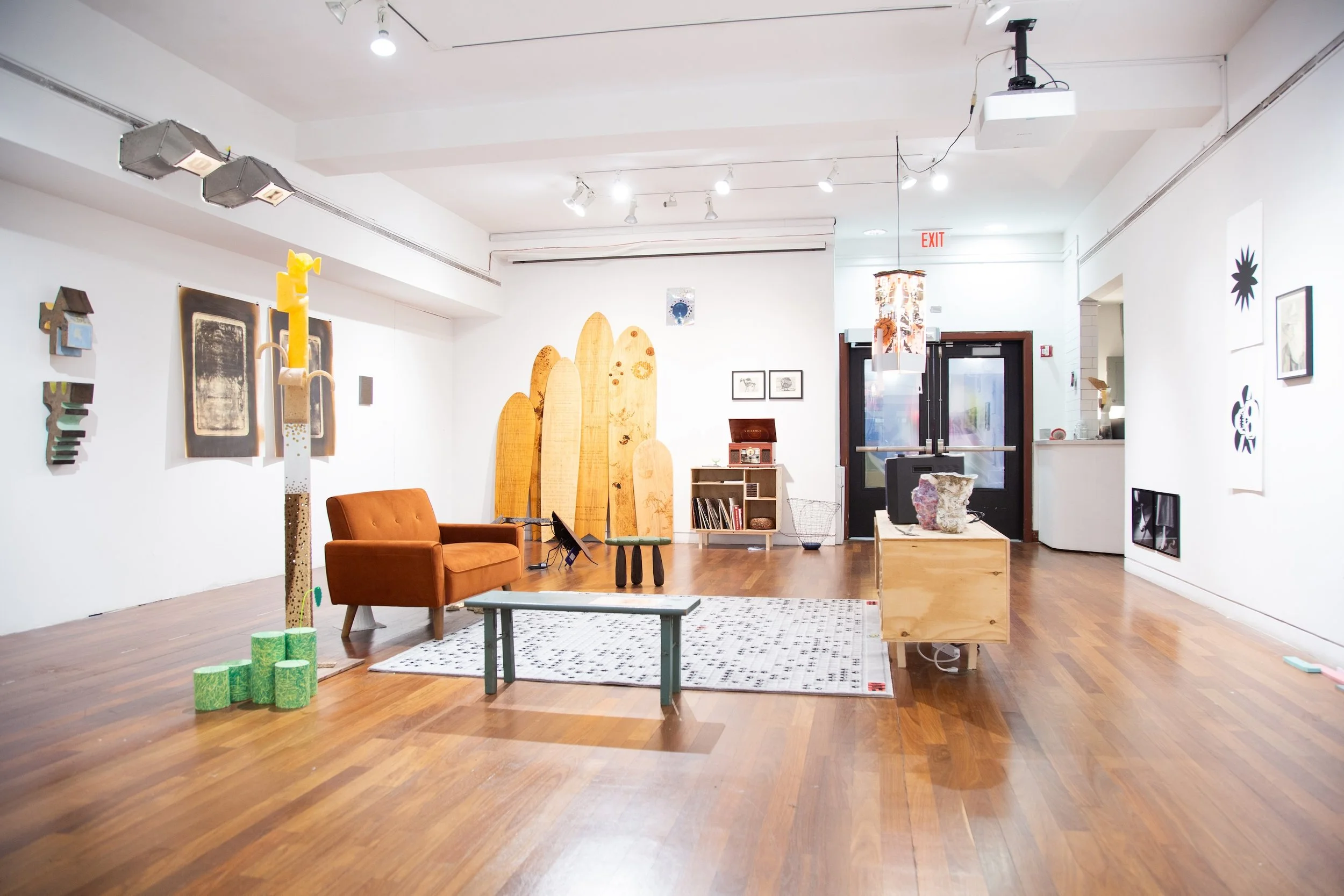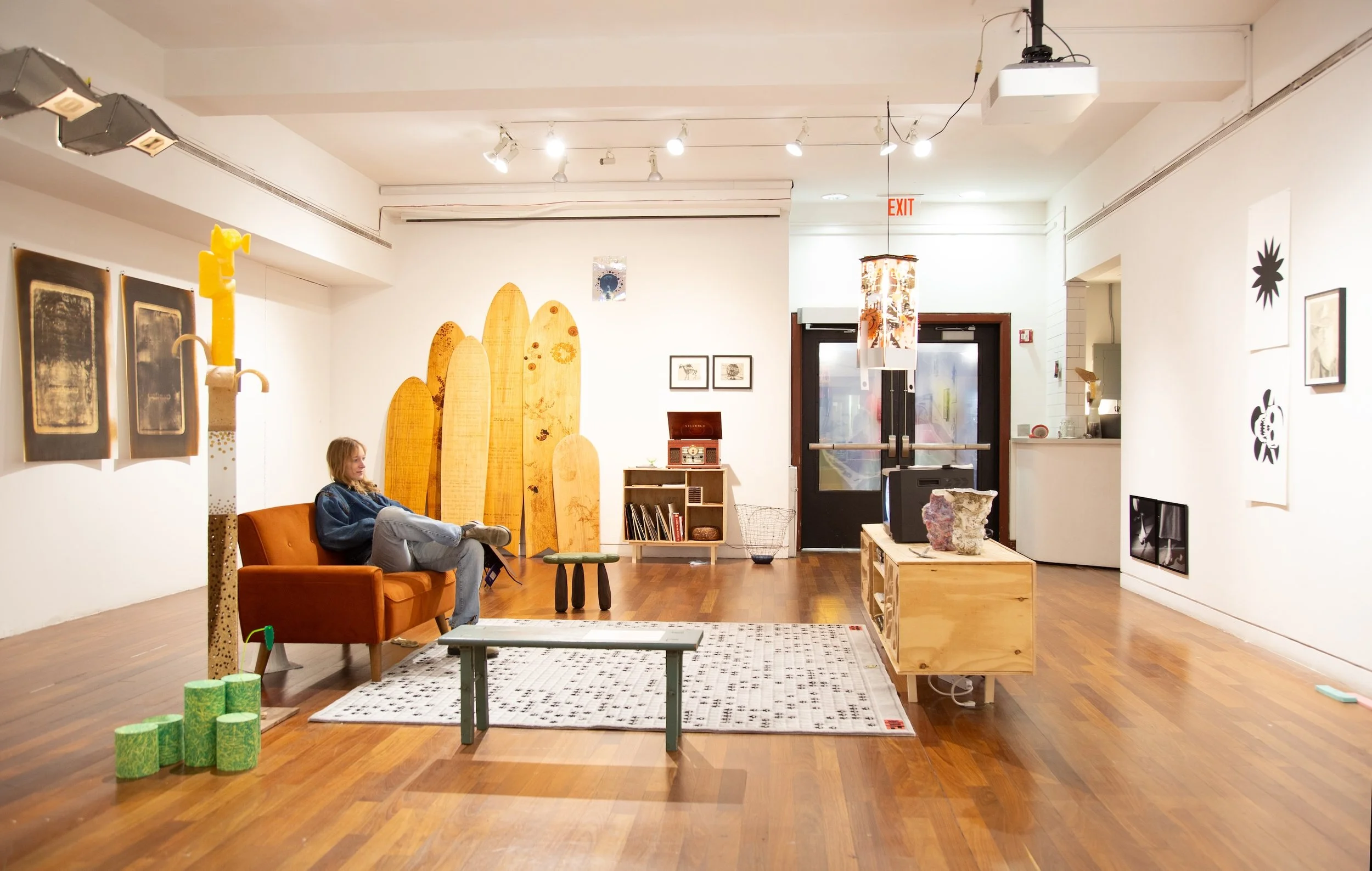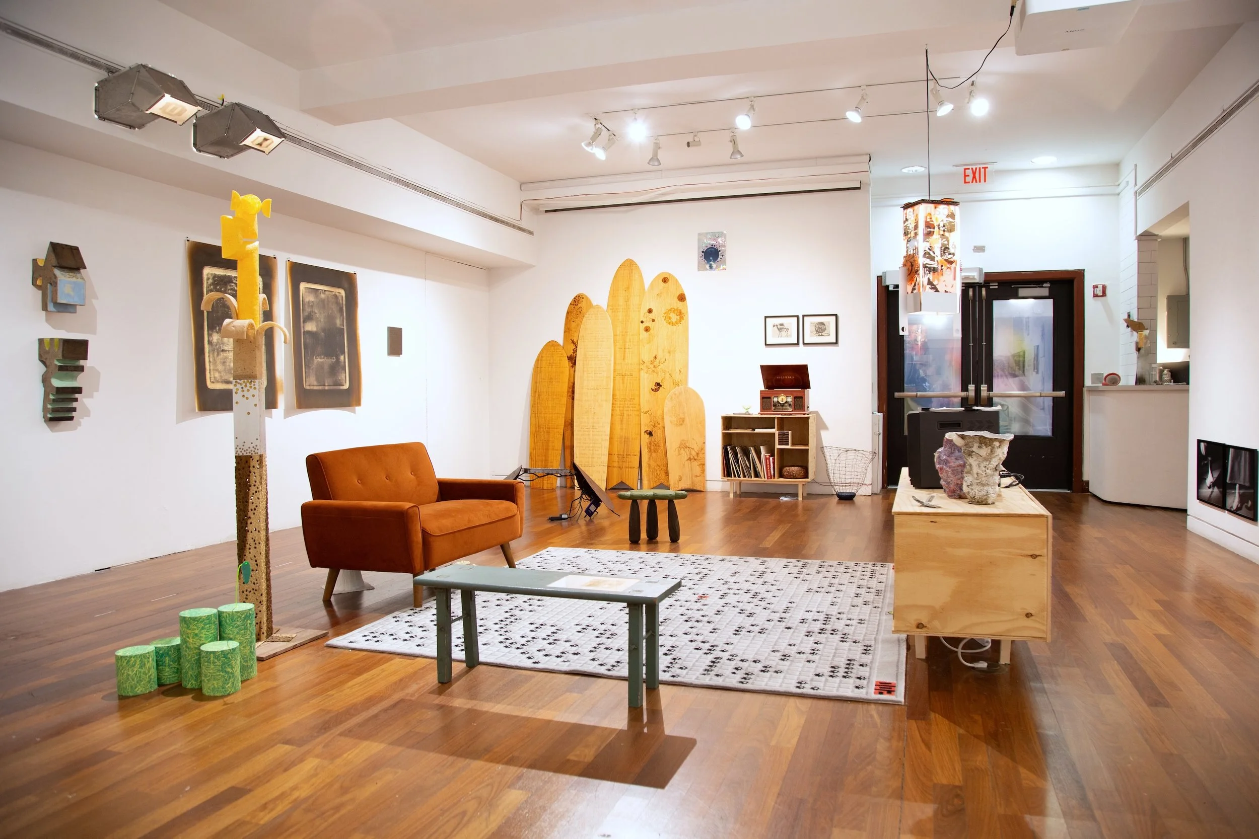 After the Last Sky adopts the spirit of Peter Lamborn Wilson's Temporary Autonomous Zone, transforming the LeRoy Neiman Gallery into a living room to explore its potential as a space of convergence and critical engagement. Bringing together works by current Columbia MFA candidates, alumni, and guest artists in dialogue with works from the LeRoy Neiman Print Center’s collection, the exhibition reimagines the living room—a site traditionally associated with private leisure and comfort—as a space for gathering, dissent, discussion, and reflection. Here, familiar domestic forms are unsettled to question the commodification of culture, redirecting our attention toward the multiplicity of perspectives on the contemporary world offered by the works in the exhibition. Through this setting, the exhibition navigates tensions between consumption, desensitization, comfort, discomfort, urgency, and political agency.