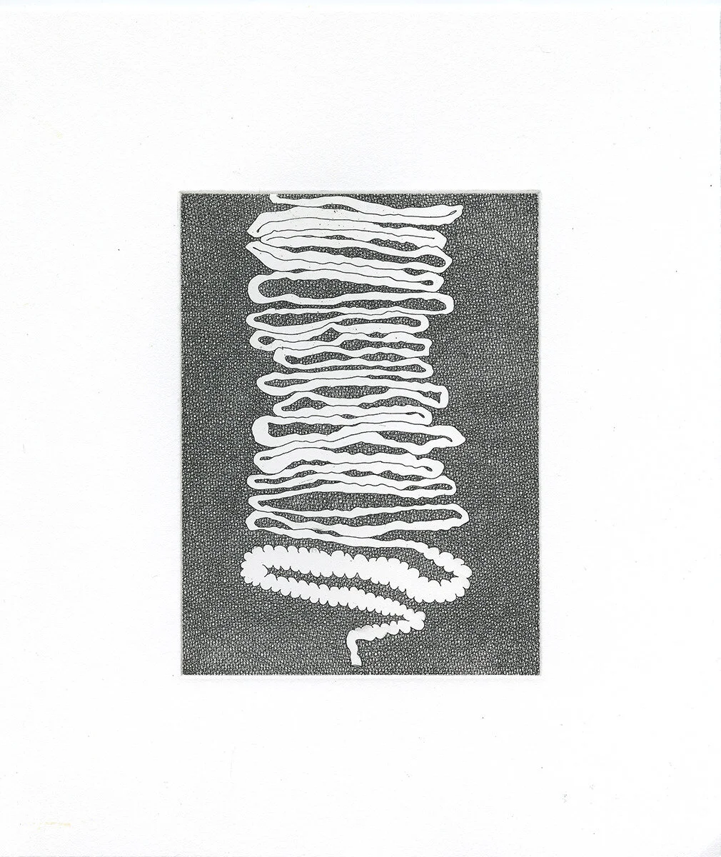 Coming from a background of photography, Bornstein turned to printmaking because of its links to the history of image reproduction. In particular, she was attracted to printmaking for its role as a precursor to photography: as one tool on a continuum of media used to record and transmit visual information. Since she began making prints in 2003, Bornstein has used the technique to clarify and articulate subject matter, much as one might make sketches in a notebook.